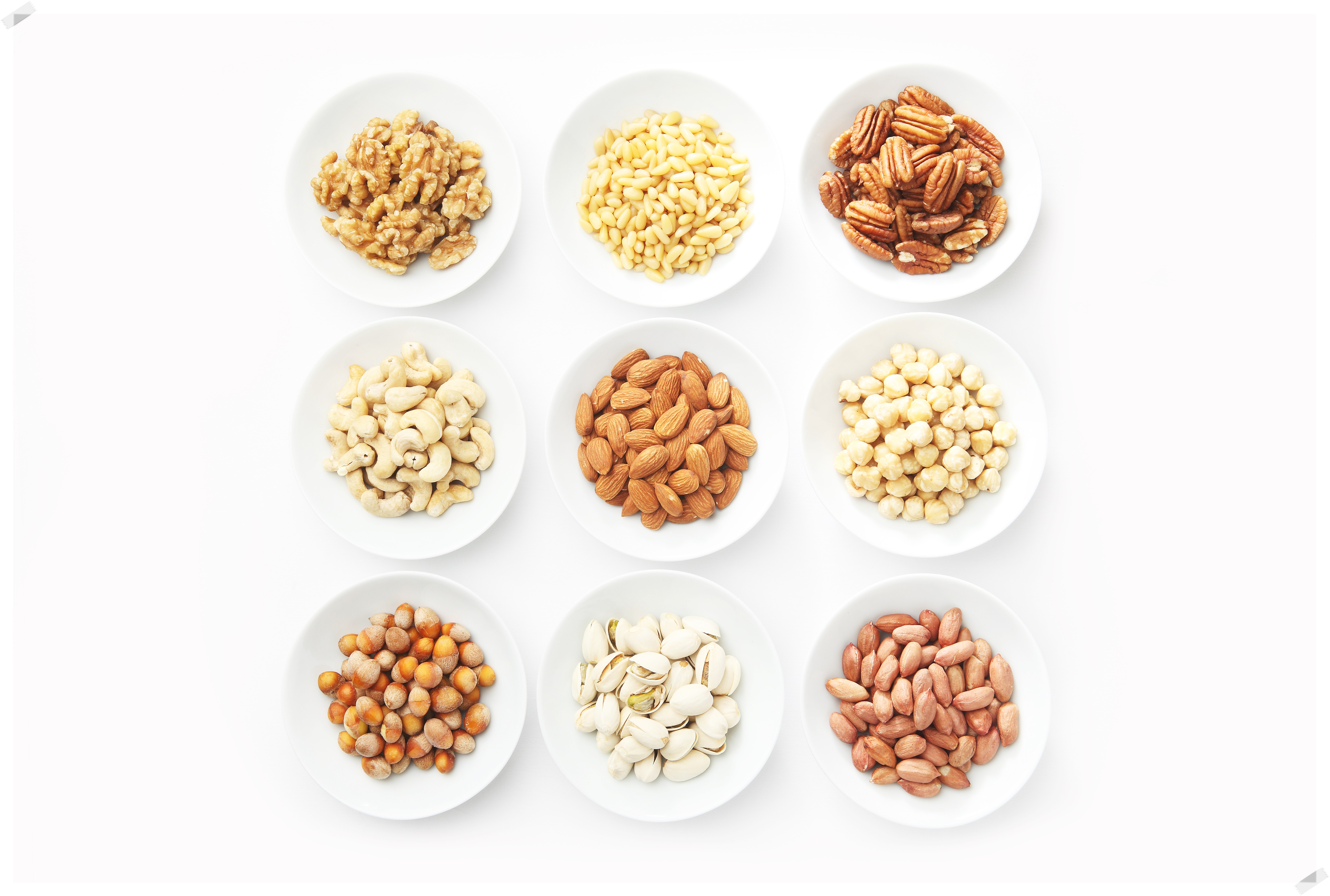 열매류 (견과류): 아몬드, 호두, 땅콩, 밤, 마카다미아 등은
